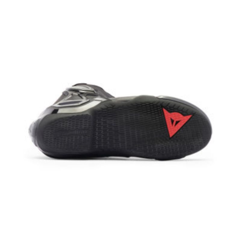 La última evolución de la bota racing por excelencia de Dainese, la misma que utilizan en la pista los campeones de MotoGP.Diseñadas para que los motociclistas puedan expresar todo su potencial concentrándose en el rendimiento, gracias a una construcción que combina a la perfección ligereza, comodidad de conducción y máxima sensibilidad, sin descuidar los altos estándares de protección garantizados por Dainese.Su diseño icónico se combina con soluciones tecnológicas de vanguardia, como elAxial Distorsion Control System en carbono Kevlar, la construcción IN con velcro para facilitar la conexión con los monos de competición de Dainese, los deslizadores de magnesio reemplazables y la suela Groundtrax® racing orientada al agarre y la resistencia al calor.Las Axial 2 Boots son una expresión del deseo de Dainese de innovar constantemente, ya que la bota se vuelve aún más protectora, ligera y duradera, posicionándose como la protección más avanzada del mercado.El puño de tejido elástico para adaptarse a diferentes anatomías, el cierre con cremallera trasera, aún más práctico y robusto, y el sistema de abrochado interior rematan las Axial 2 Bootshaciendo que sean eficaces, prácticas y funcionales.