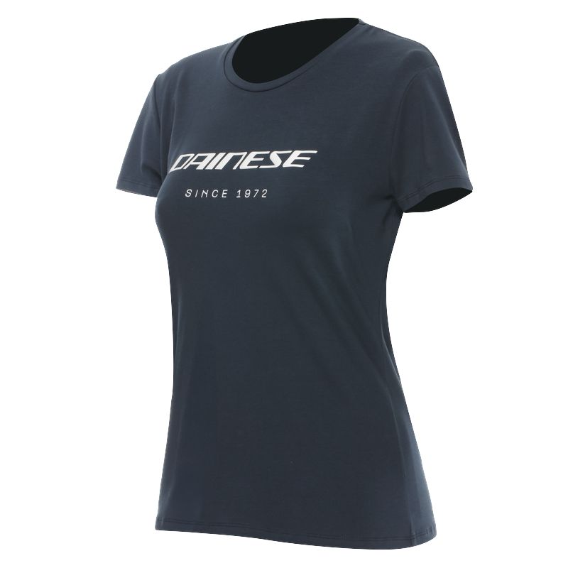 Camiseta de mujer con cuello redondo de algodón 100 % con marca Dainese en el delantero.Para un estilo informal y moderno en todos los contextos del día a día.