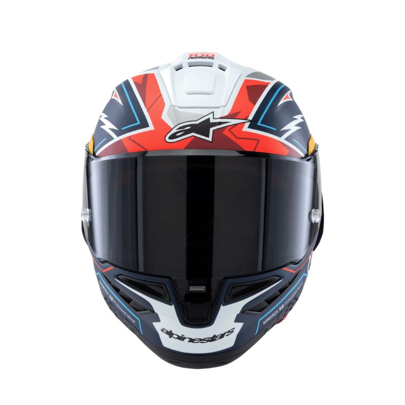 Esculpido por la velocidad Diseñado y desarrollado para atletas profesionales de MotoGP donde el objetivo es ir MÁS RÁPIDO y estar PROTEGIDO. Al minimizar la resistencia y garantizar una estabilidad aerodinámica óptima, gestión del aire dentro y fuera del casco y un ajuste cómodo y personalizable, el S-R10 mejora la experiencia general en carreras y conducción deportiva. El Alpinestars Supertech R10 es el pináculo de los cascos de carreras Alpinestars. Diseñado para funcionar y proteger, diseño optimizado de la mentonera para una máxima protección de la clavícula. Además de la carcasa optimizada para el rendimiento aerodinámico y de resistencia, también está diseñado con un hueco en el área de la clavícula para mantener un volumen más suave en caso de contacto con el cuerpo. La mentonera está perfilada para ofrecer ligereza y robustez, protegiendo la zona de la punta de la barbilla del ciclista. Construcción : Construcción compuesta multicapa unida con resina epoxi avanzada para maximizar la resistencia, el rendimiento mecánico y la relación de peso. Protección: Diseño de protección general El diseño externo e interno y las densidades de los materiales están optimizados para una máxima protección contra impactos de aceleración lineal y oblicua. El perfil inferior de Shell está diseñado para proteger la clavícula del ciclista en caso de un impacto fuerte. Aerodinámica – FORMA AERODINÁMICA TOTALMENTE OPTIMIZADA