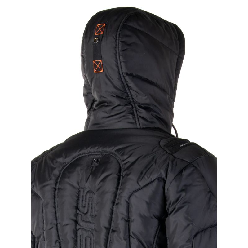 - Sistema de protección contra tormentas que envuelve la capucha con 2 cordones de ajuste para reducir las sacudidas del viento durante la conducción, y un sistema de cierre con presilla para fijar la capucha.