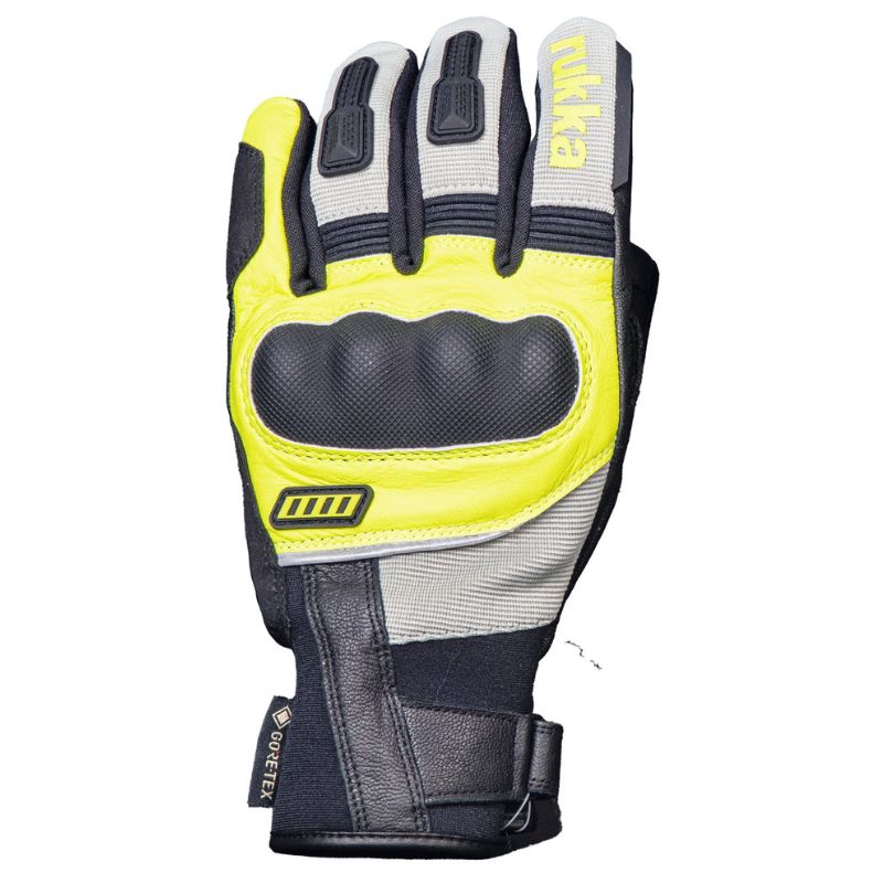 Guantes de moto Rukka Gore-tex Gore Grip para hombre. Limpiaparabrisas en el dedo índice izquierdo. Máxima sensibilidad táctil para un control perfecto con la tecnología GORE-TEX® Gore Grip. Puntas de los dedos para pantalla táctil en los dedos índice y pulgar. Puños elásticos con cierre de velcro. Guantes GORE-TEX totalmente impermeables, cortavientos y transpirables. Combinación de piel de cabra, tejido elástico y neopreno.
