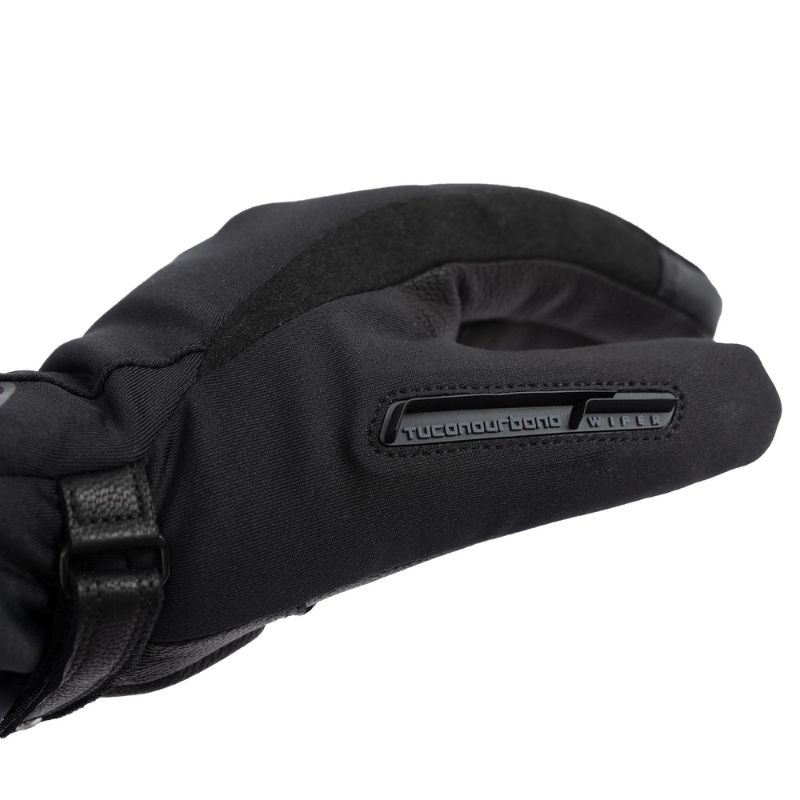 - Bolsillo para control remoto o dispositivo de pago de peaje en el puño, con cremallera resistente al agua, en el guante izquierdo
