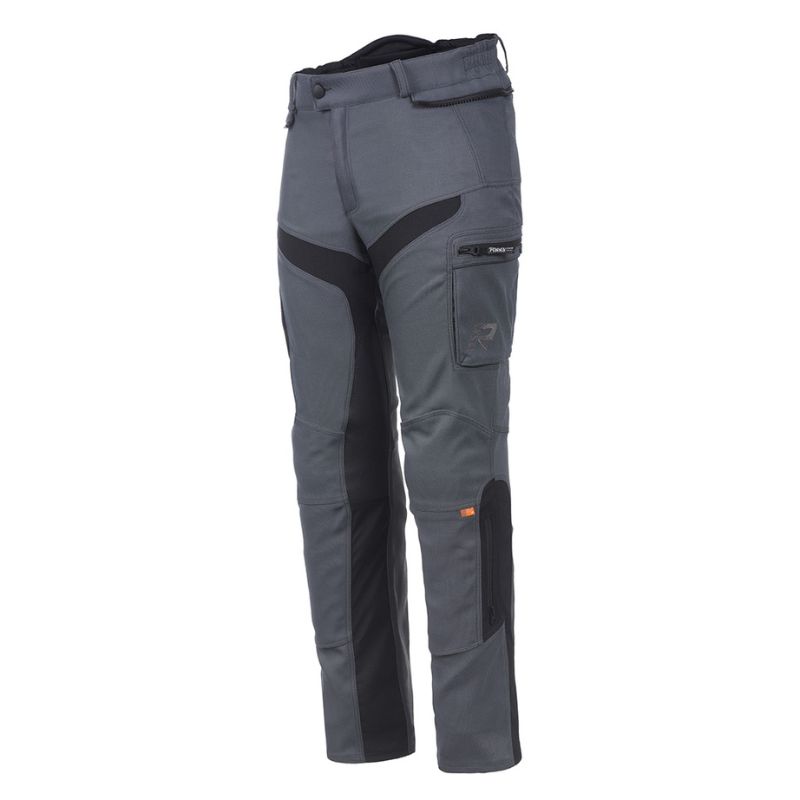 Pantalones de moto Rukka Adventure para hombre. Sistema Rukka AirCushion y Rukka Antiglide fabricado con Schoeller® Keprotec® en la zona del asiento. Parches de cuero resistentes al calor y a la abrasión en el lado interior de las rodillas. Cremallera de conexión para chaqueta. Trabillas para cinturón. Bajos de pierna con cremalleras. Se puede equipar con tirantes Rukka Defence & Comfort. Tejido exterior CORDURA® Stretch Mesh 500D extremadamente elástico y cómodo. Dos bolsillos cargo con cremalleras.