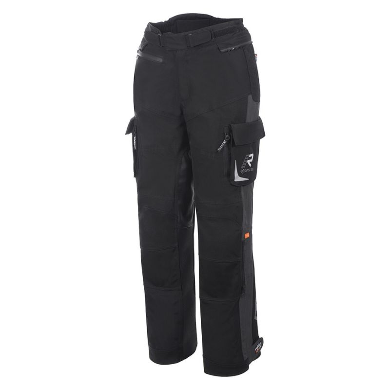 Pantalones de moto Rukka Adventure para mujer. Sistema Rukka AirCushion en la zona del asiento. Parches de cuero resistentes al calor y a la abrasión en la parte interior de las rodillas y en la zona del asiento. Paneles elásticos en el canesú trasero. Cierre de cintura con doble ajuste. Cremallera de conexión para chaqueta. Bajos de pierna ajustables con cremalleras y velcro. Se puede equipar con tirantes Rukka Defence & Comfort. Refuerzos CORDURA® 500D resistentes a la abrasión en caderas y rodillas. Tejido exterior de poliéster GORE-TEX de 2 capas laminado resistente al desgarro y a la abrasión, 100 % transpirable, resistente al viento y al agua. Un bolsillo exterior con cremallera. Dos bolsillos cargo resistentes al agua con cremalleras y cierres de velcro.